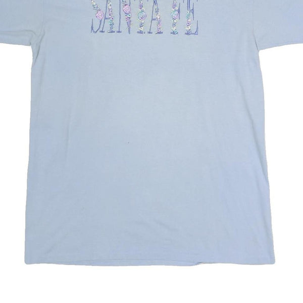 BUMWRAPS Mens Pale Blue Santa Fe Graphic T-Shirt L Short Sleeve Crew Neck
