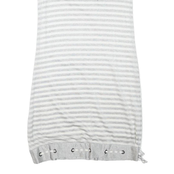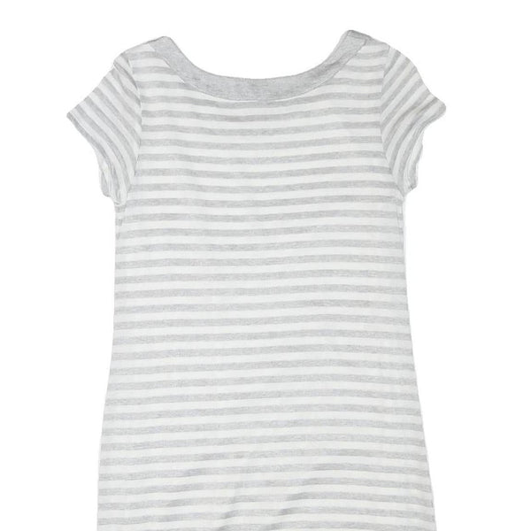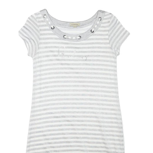 BURBERRY Girls Grey & White Stripe Day Jersey Dress M Cotton Blend Short Sleeve