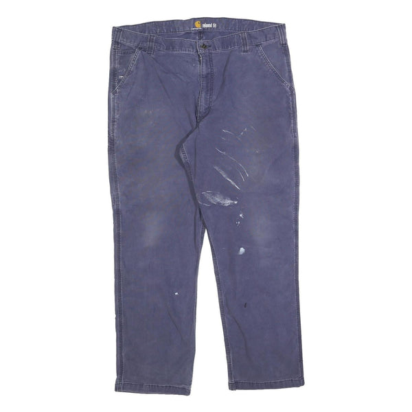 Carhartt mens relaxed cotton blend blue workwear trousers w40 l30 zip closure