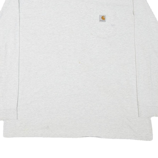 CARHARTT Mens White Crew Neck Long Sleeve 2XL Logo Pocket Plain Cotton Blend