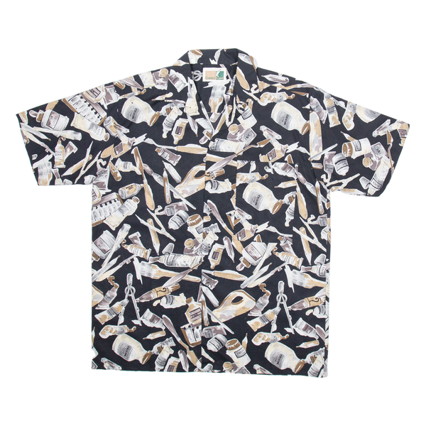 CASUAL LAND Mens Shirt Black Crazy Pattern L