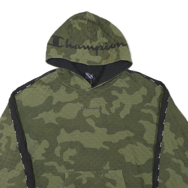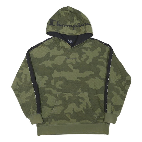 CHAMPION Boys Green Camouflage Hoodie 2XL Cotton Blend Pullover