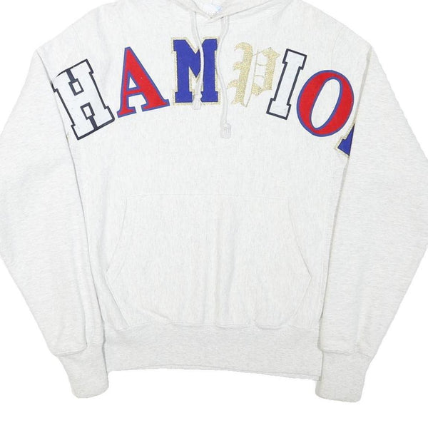 CHAMPION Mens White Multicolour Logo Hoodie S Cotton Blend Pullover Casual