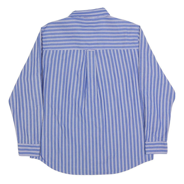 Chaps mens blue & white stripe button-down shirt l classic fit collar long
