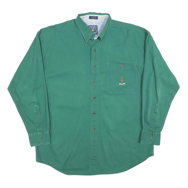CHAPS Mens Green Cotton Shirt L Button Down Pocket Classic Fit Comfortable