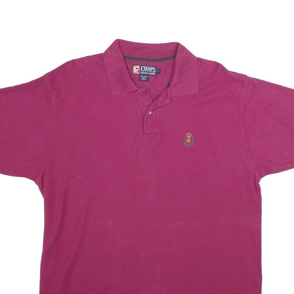 CHAPS Mens Pink Short Sleeve Polo Shirt L Classic Cotton Crest Embroidered