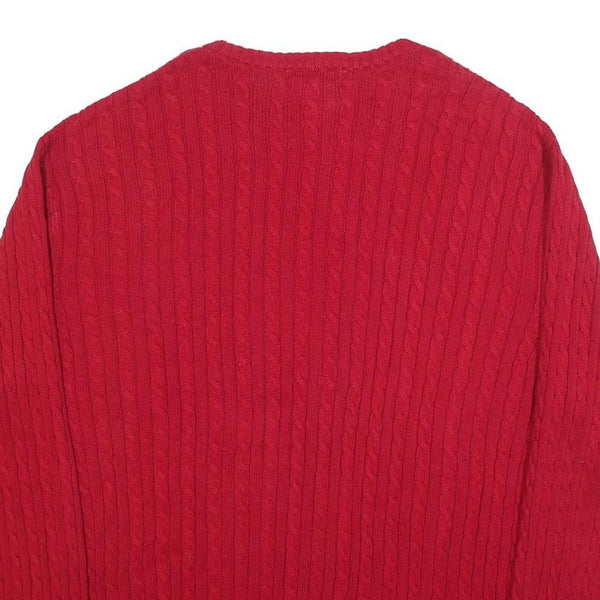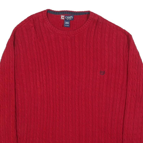 CHAPS Mens Red Cable Knit Crew Neck Jumper XL Cotton Classic