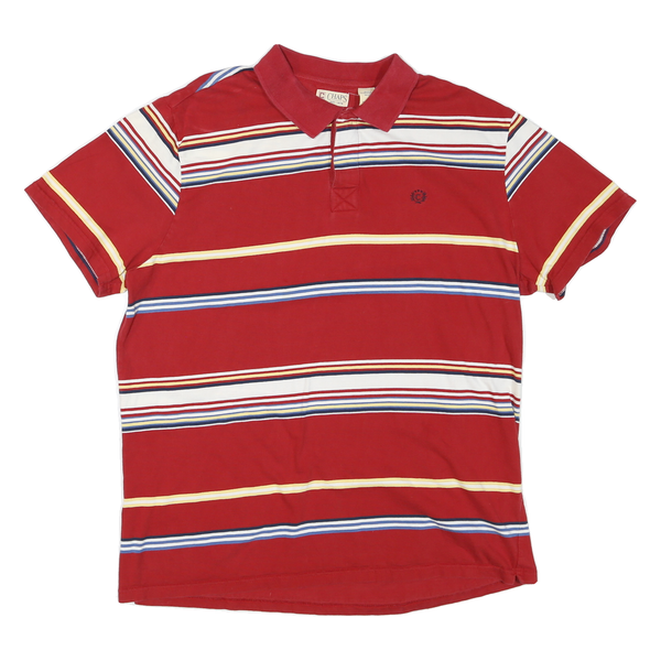 CHAPS Mens Red & White Striped Short Sleeve Polo Shirt XL Classic Fit Cotton