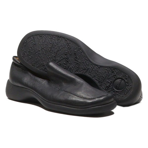 CLARKS Loafer Shoes Black Leather Womens UK 3.5