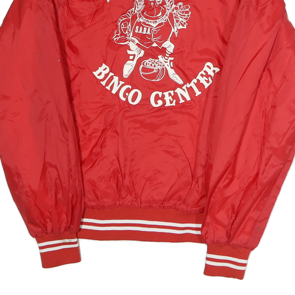 CLUB 21 Mens Red Nylon Button Jacket M Plain Retro Vintage Style