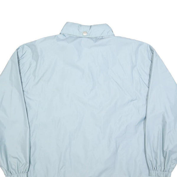 This womens jacket by COSMOS presents a soft blue colour crafted from a polyester blend fabric, offering a lightweight yet durable feel. The jacket features a simple, plain design with a subtle embroidered logo on the chest, enhancing its minimalistic style.