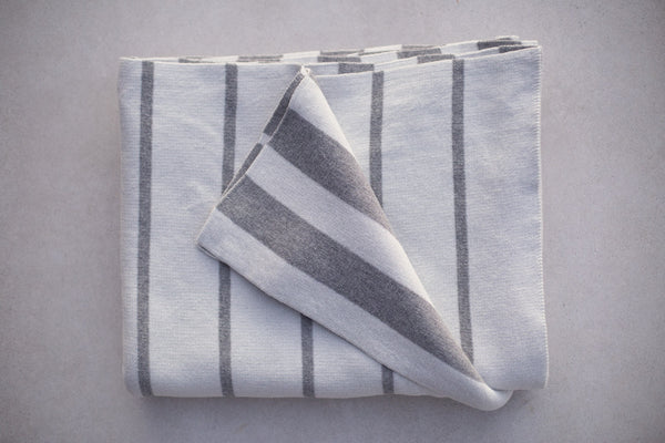 Don't let the angular clarity of this blanket's design fool you... It's nothing but soft. That said, lay it across your favorite chair or sofa and its offset geometry is hard to miss. Made in the USA from 100% recycled thread from Spain. The color inverts on either side and stays cozy no matter what.