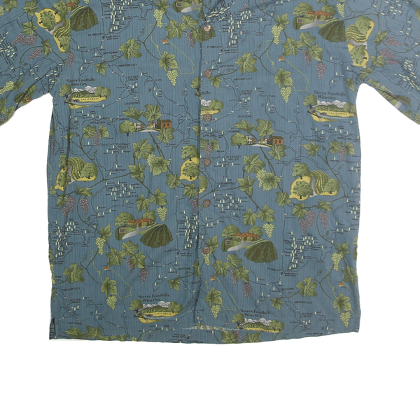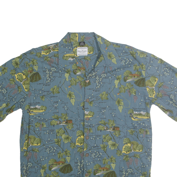 DAVID CAREY Mens Blue Green Map Print Casual Shirt XL Cotton Blend Short Sleeve