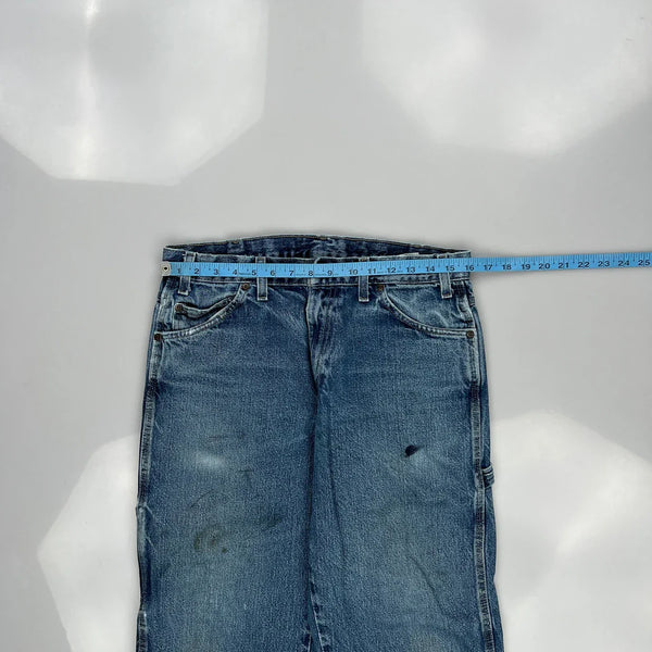 Dickies Carpenter Jeans, fit a 32″ Waist and 30″ inseam.