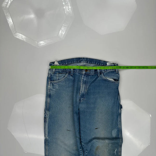 Dickies Carpenter Jeans, fit a 34″ Waist and 31″ inseam.