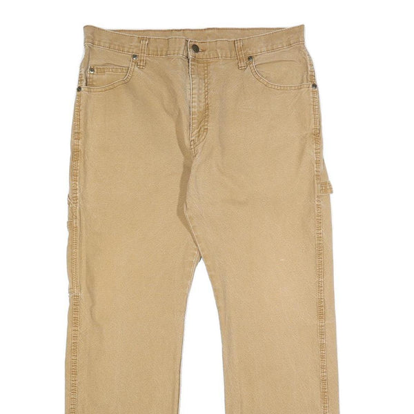 DICKIES Mens Cotton Blend Beige Regular Fit Straight Trousers W34 L30 Workwear