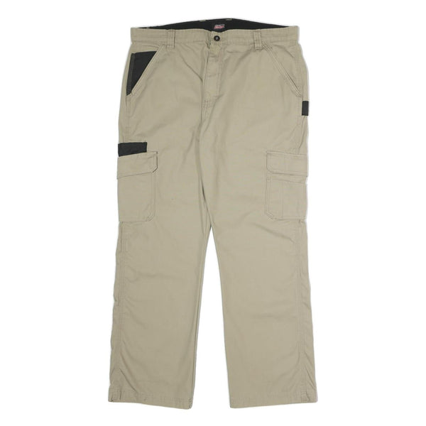 DICKIES Mens Cotton Blend Beige Regular Straight Trousers W36 L30 Workwear Zip