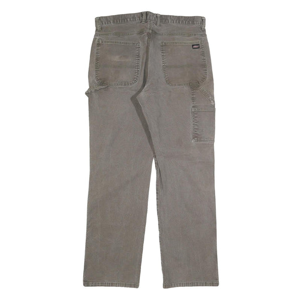 DICKIES Mens Cotton Blend Grey Relaxed Straight Trousers W36 L31 Workwear Zip
