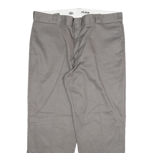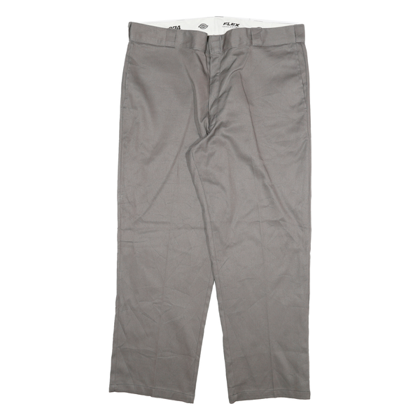 Dickies mens grey cotton blend regular straight trousers w40 l30 workwear zip