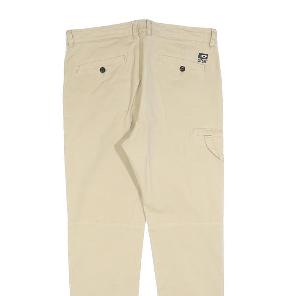DIESEL Mens Cotton Blend Beige Slim Tapered Trousers W32 L30 Casual Zip Closure