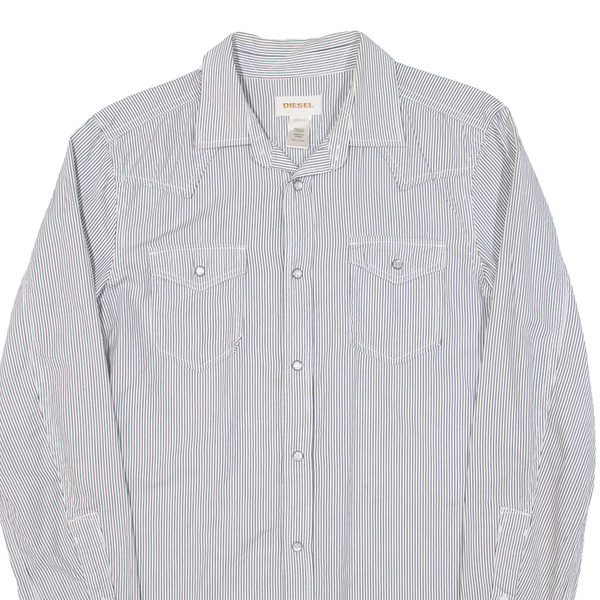DIESEL Mens Shirt Grey Striped Long Sleeve S