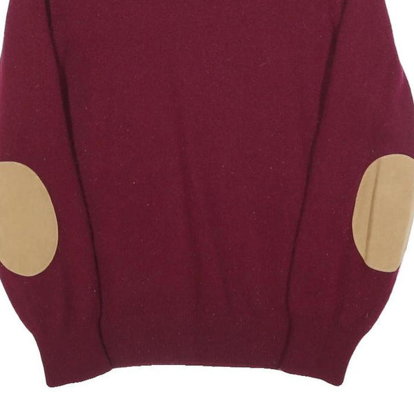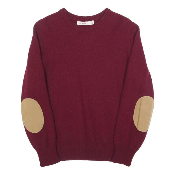 DR MARTENS Boys Maroon Plain Wool Jumper Crew Neck Basic Knit L Elbow Patch