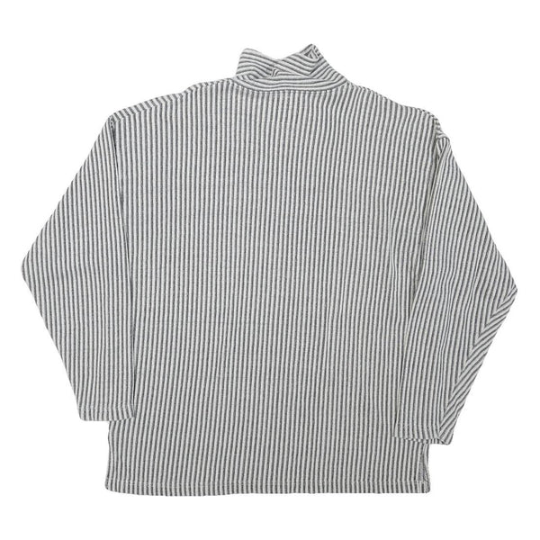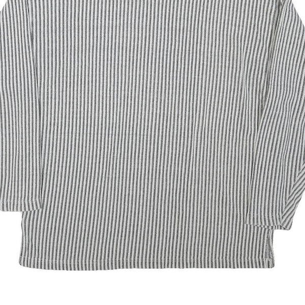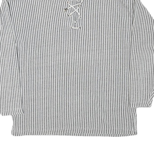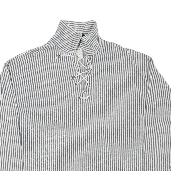 EASY WAY Mens Grey & White Striped Pullover Sweatshirt L Lace Up Neck Casual