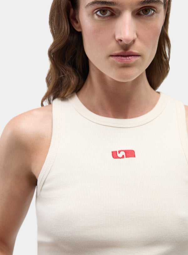 ECRU EMBROIDERED LOGO TANK TOP