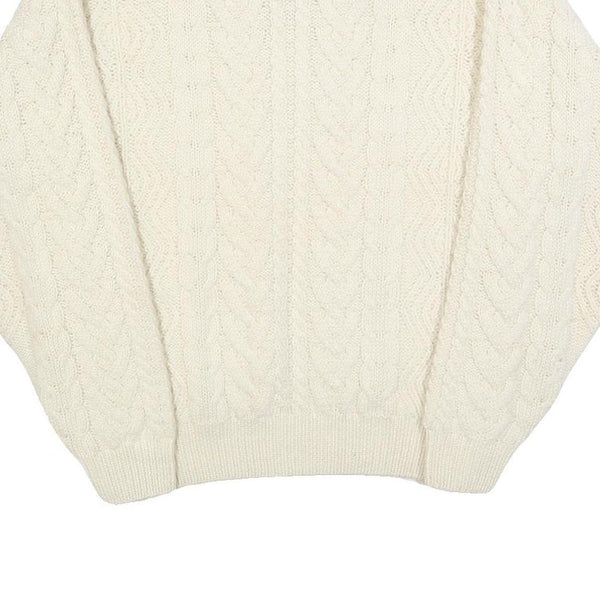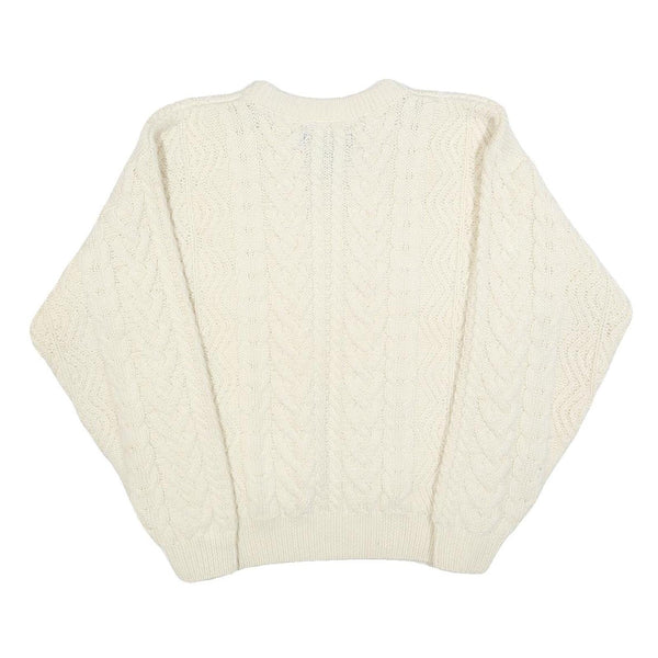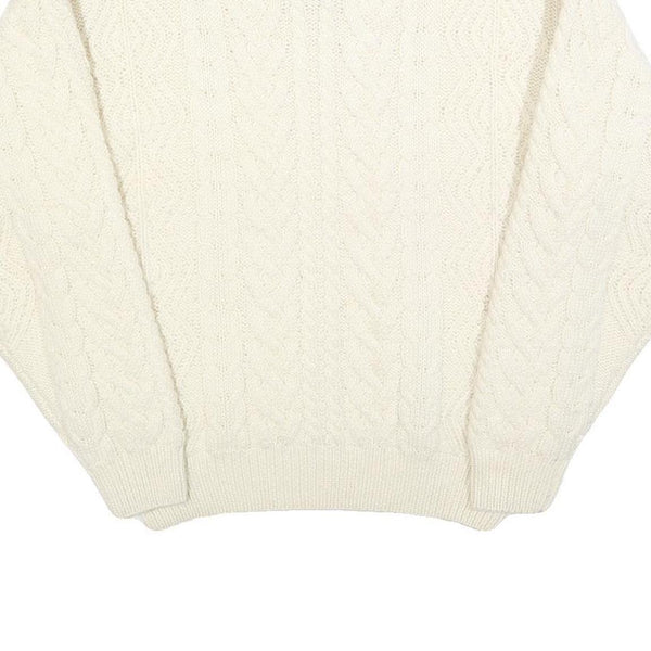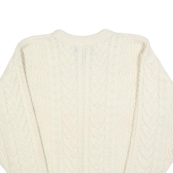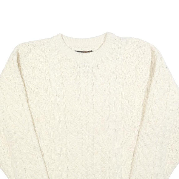 EDDIE BAUER Womens Cream Plain Wool Cable Knit Crew Neck Jumper M Soft Warm