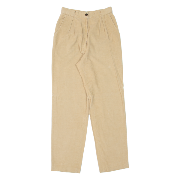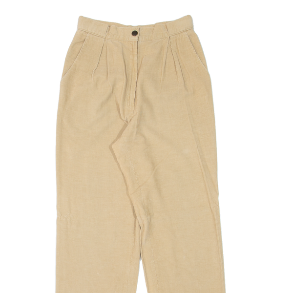 ELLE EVE Pleated Womens Corduroy Trousers Beige Regular Mom 90s W24 L29