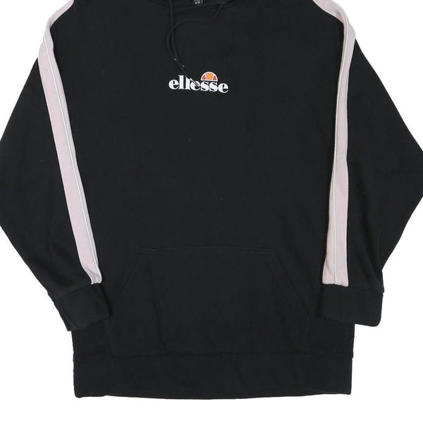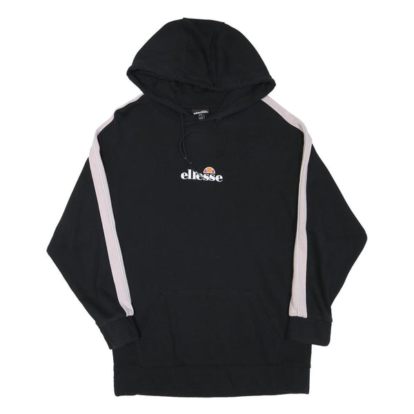 ELLESSE Womens Black & Pink Hoodie UK 12 Cotton Blend Pullover Casual Sweatshirt