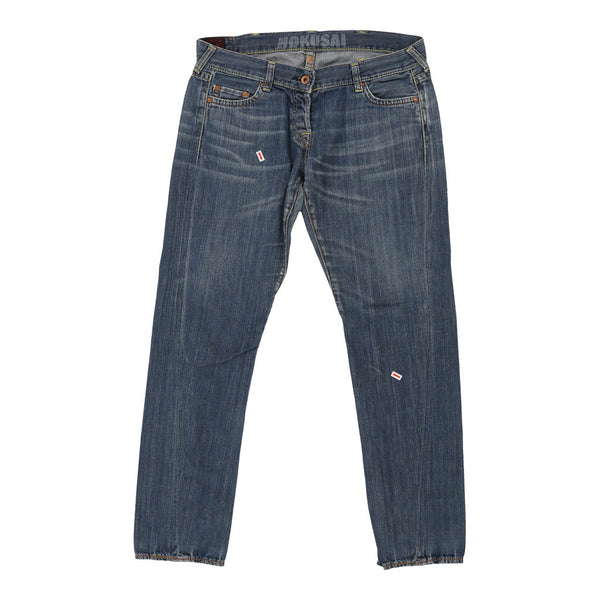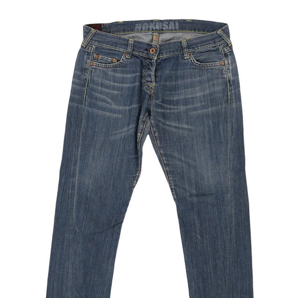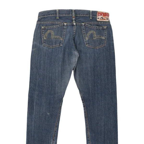Vintage Evisu blue jeans, fit a UK size 14 - low waisted with a 35" waist.