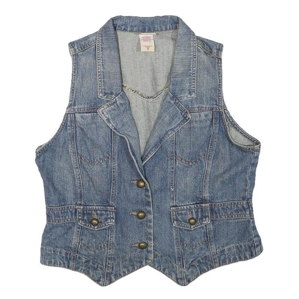 Faded glory womens blue denim button jacket s cotton blend sleeveless casual