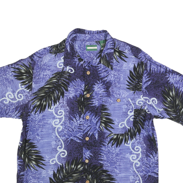 Falls creek mens blue rayon hawaiian shirt l leaf print summer casual