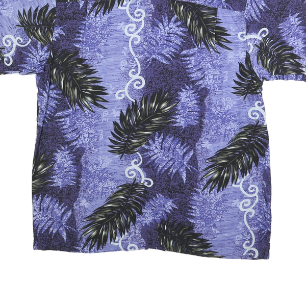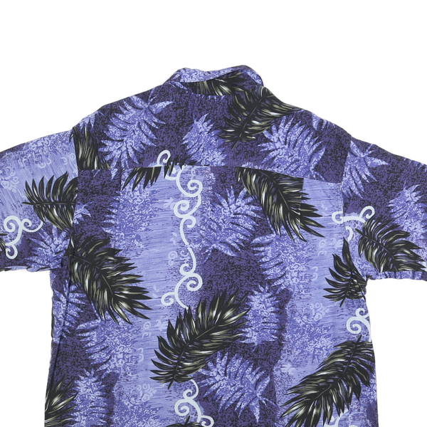 FALLS CREEK Mens Blue Rayon Hawaiian Shirt L Leaf Print Summer Casual