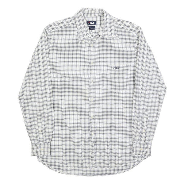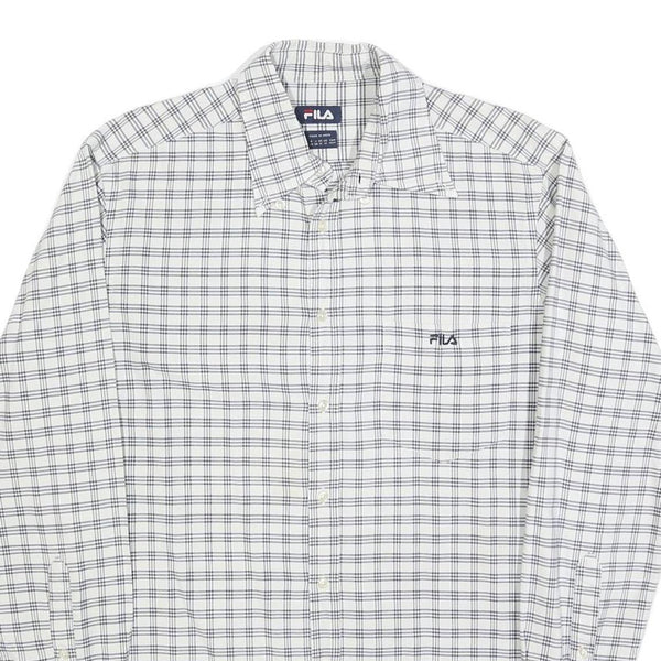 FILA Mens White & Blue Checked Shirt M Casual Button-Down Long Sleeve Cotton