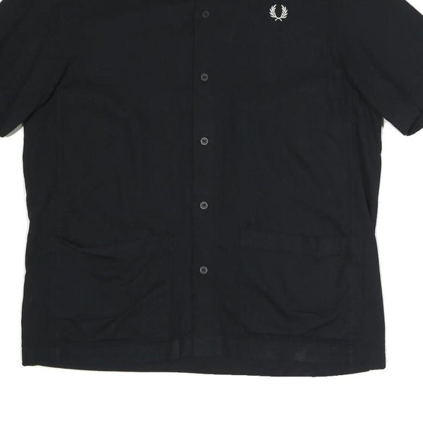 FRED PERRY Mens Black Shirt M Cotton Blend Short Sleeve Casual