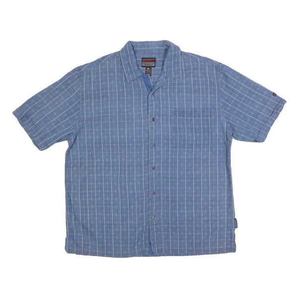FUBU Mens Blue & White Check Shirt 2XL Cotton Blend Casual Short Sleeve