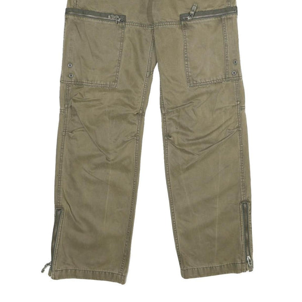 FUNDAMENTALS Mens Cotton Khaki Regular Fit Straight Leg Trousers W32 L34 Zip