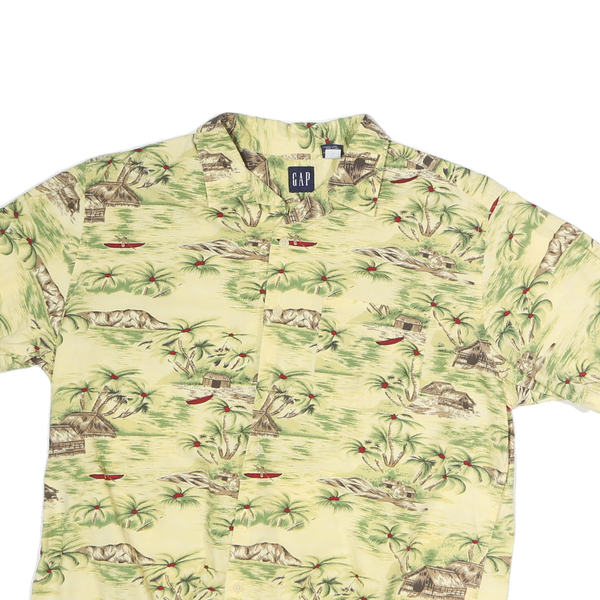 GAP Mens Yellow Cotton Hawaiian Shirt M Casual Short Sleeve Soft Fabric