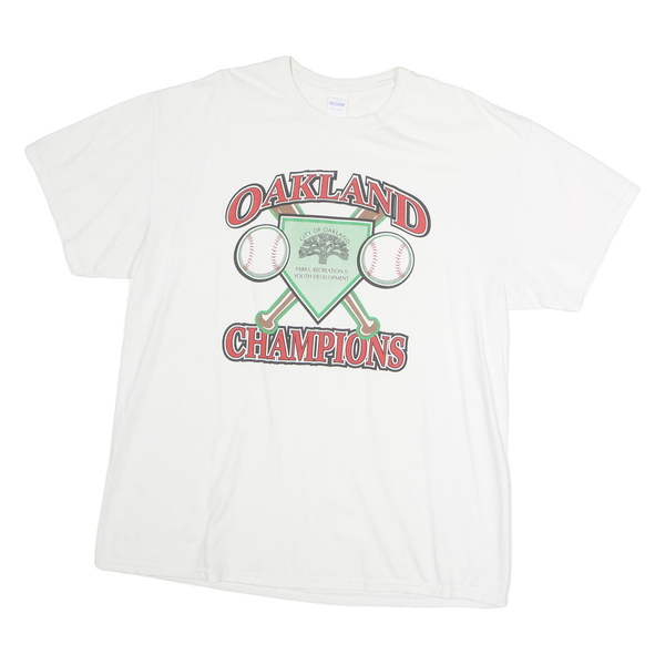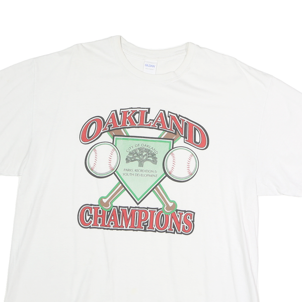GILDAN Mens White Oakland Champions Graphic T-Shirt XL Short Sleeve Crew Neck