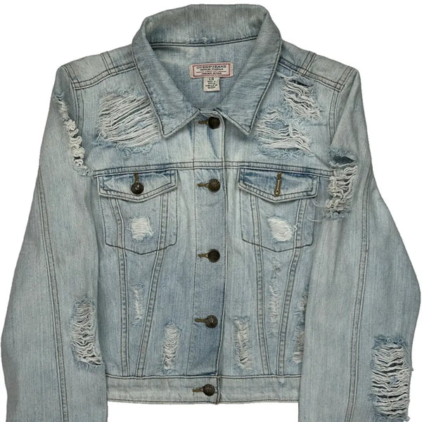 Distressed Denim Jacket With Ripped Details.