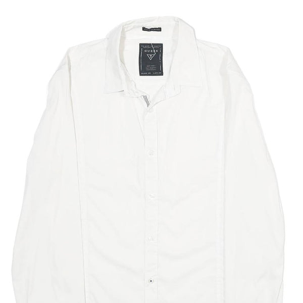 GUESS Mens White Plain Shirt M Casual Button Down Cotton Blend