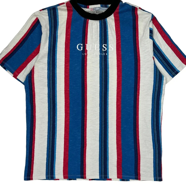 Blue, Red, And White Striped T-Shirt With Guess Logo