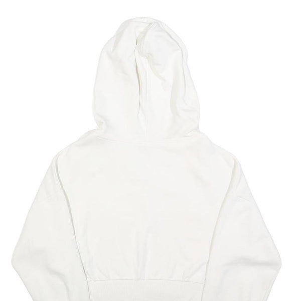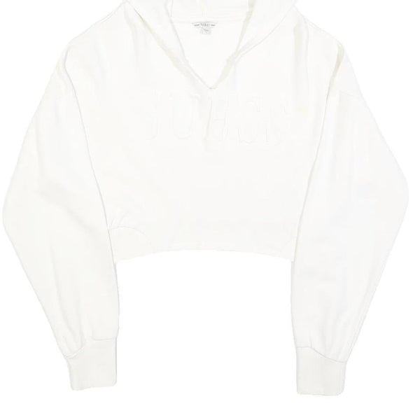 GUESS Womens White Cropped Hoodie L Cotton Blend Casual Streetwear