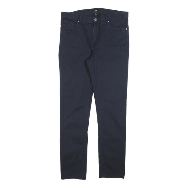H&M Mens Cotton Blend Navy Slim Straight Trousers W31 L31 Casual Wear