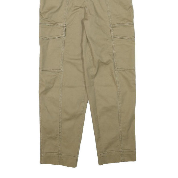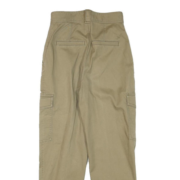 H&M Womens Cotton Blend Beige Relaxed Trousers W25 L26 Cargo Pocket Zip Closure