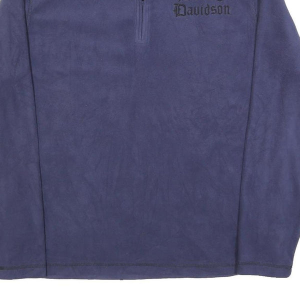 This men's Harley Davidson jumper features a rich blue colour with black embroidered "Harley Davidson" text on the chest. It has a clean, plain design that highlights the branding subtly.