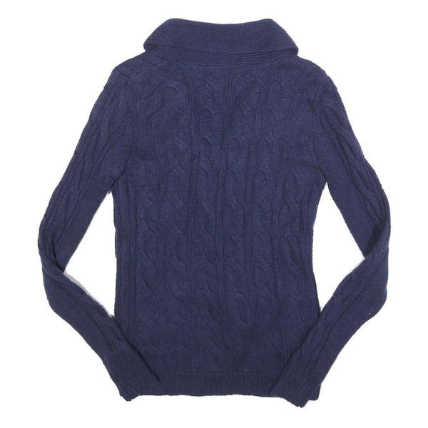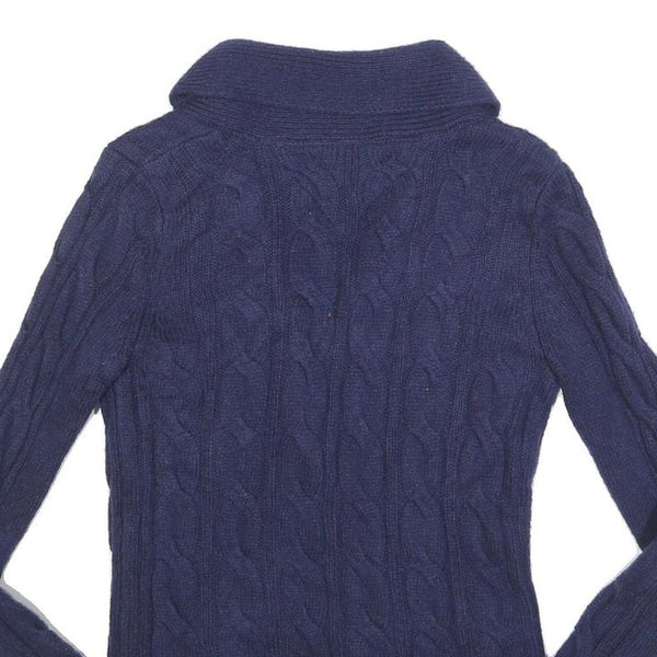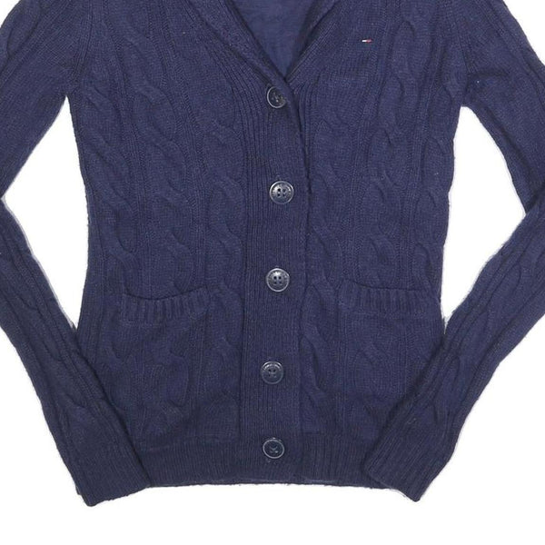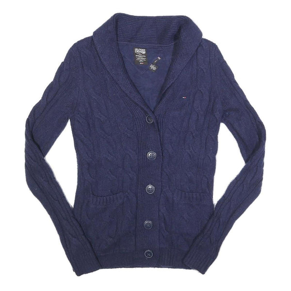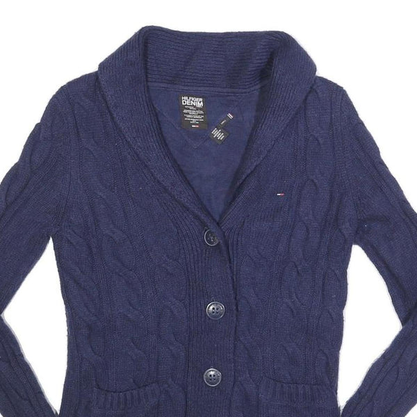 HILFIGER DENIM Womens Blue Patterned Cardigan Cable Knit Shawl Collar S Wool
