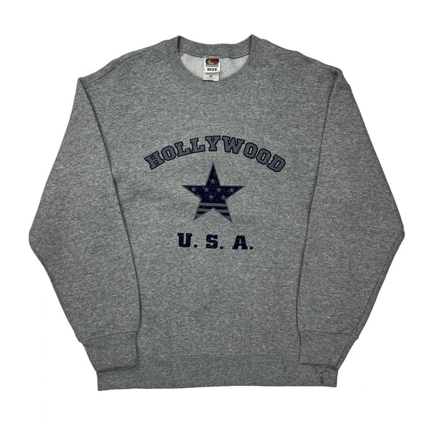 Hollywood u.s.a. fruit of the loom college sweatshirt - large grey cotton blend